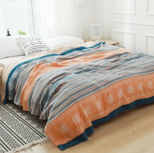 - 新入荷推薦ガーゼケット 北欧柄 花柄 シングル ブランケット 5重ガーゼ 綿100% 四季兼用 オシャレ オレンジ色