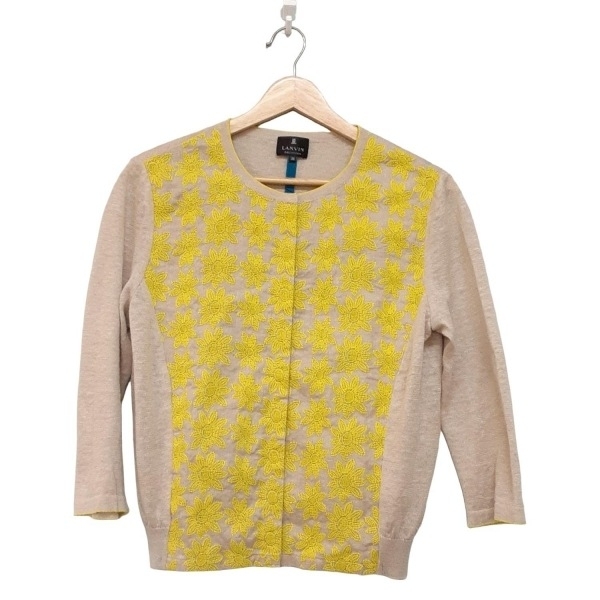 > ランバンコレクション LANVIN COLLECTION カーディガン サイズ38 M - グレーベージュ×イエロー レディース 長袖/麻/花柄/刺繍 美品