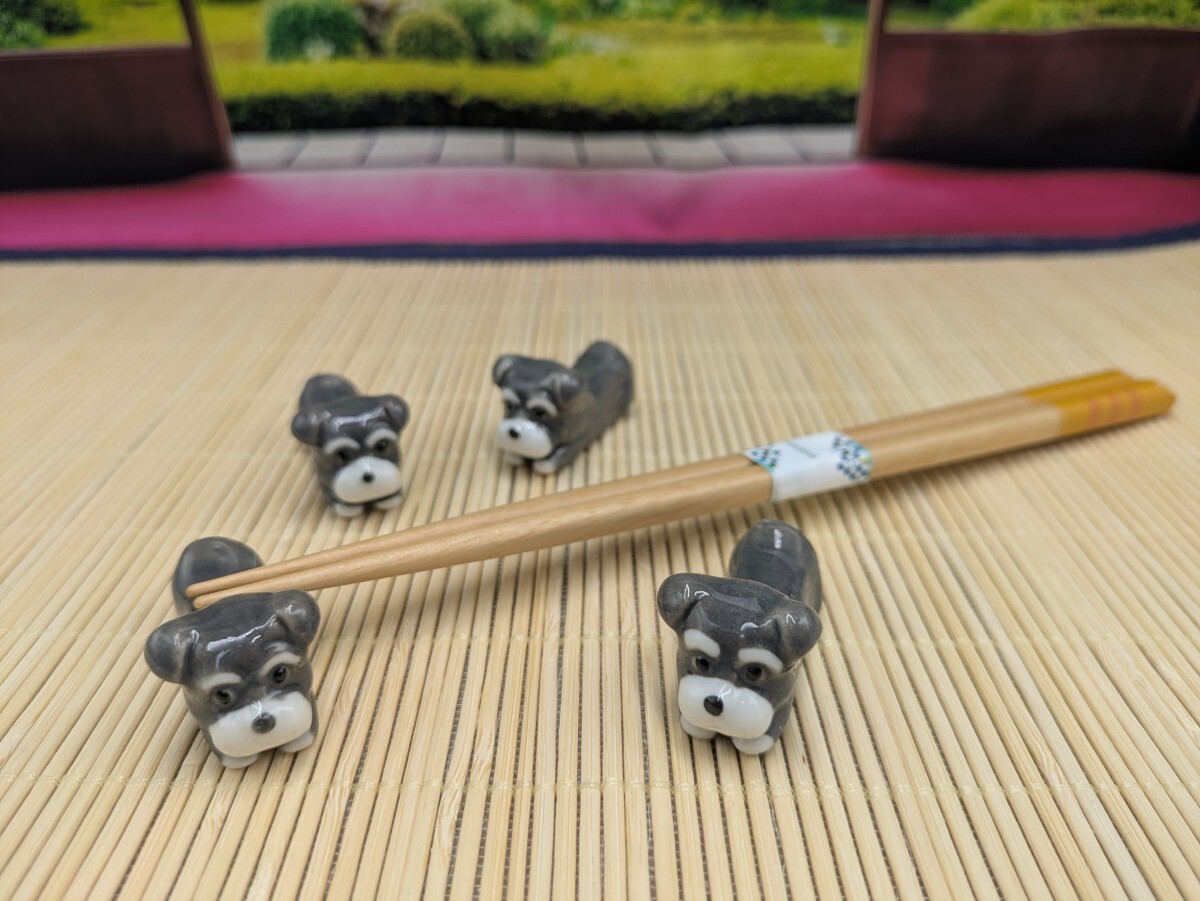 - 陶器製 箸置き 4個セット 犬 シュナウザー 置物 かわいい犬の箸置き