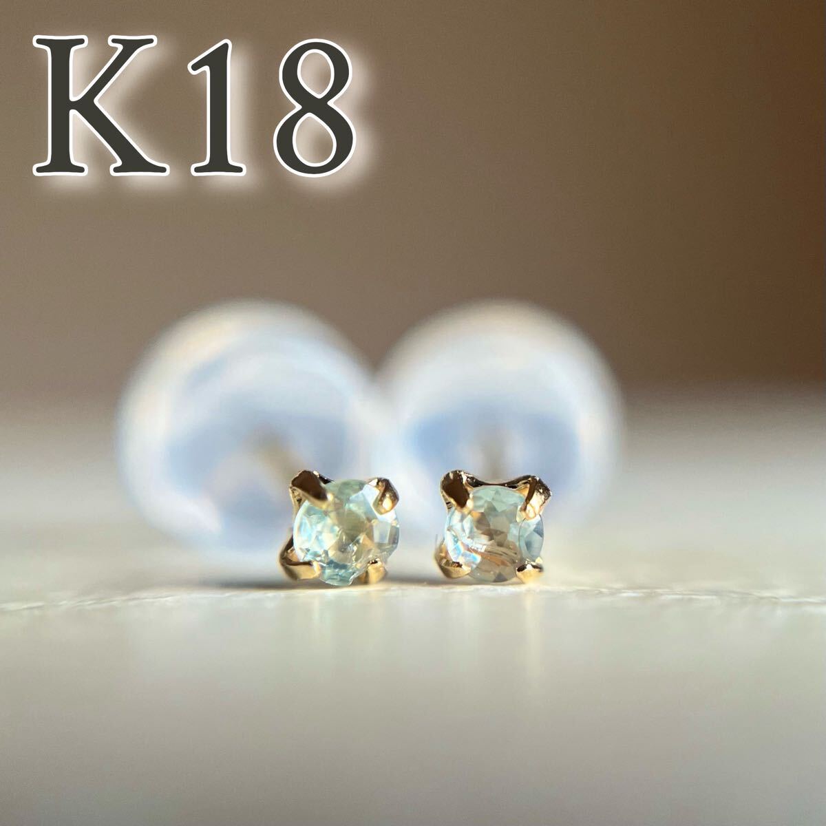 - K18 天然石アレキサンドライト ピアス ラウンド 希少 レア カラーストーン 18金