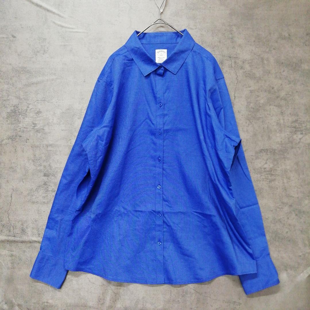 - ブルックスブラザーズ 長袖シャツ XL ビジネスカジュアル 青無地【5801】