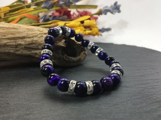 > パワーストーン ブレスレット パープルタイガーアイ (ロンデル:シルバー) 8mm 開運 浄化 金運 仕事運 効果 レディース