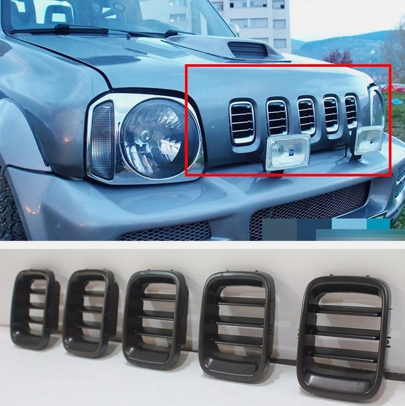 - 1998-2011 スズキ ジムニーJB23 1型〜3型/JB33/JB43 2型〜7型 5PCS/セット フロント グリル カバー ジムニーワイド シエラ 黒
