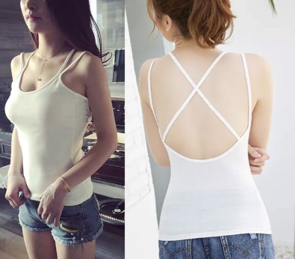 - キャミソール 背中みせ 紐 パット付き ストレッチ レディース フリーサイズ ホワイト