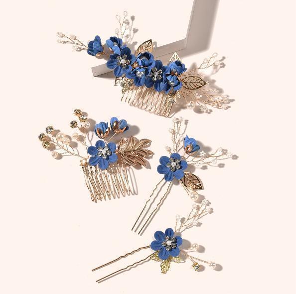 - 新品 ヘアアクセサリー 髪飾り 着物 ヘアピン ヘッドレスト 花 前撮り 結婚式 七五三 成人式 ウエディング 披露宴 青 ブルー