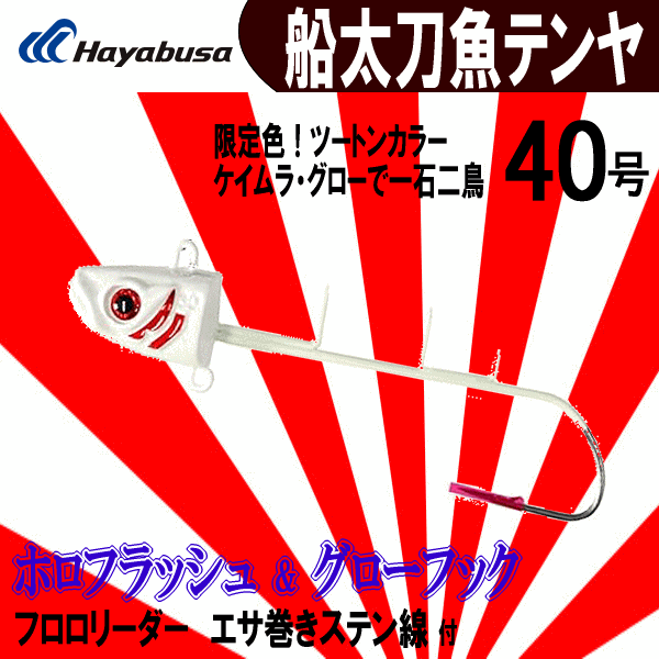 - ■999円~【船太刀魚テンヤ ホロフラッシュ&グローフック】40号 送料激安200円 ツートンカラー ケイムラ&グローの限定色!一石二鳥で◎