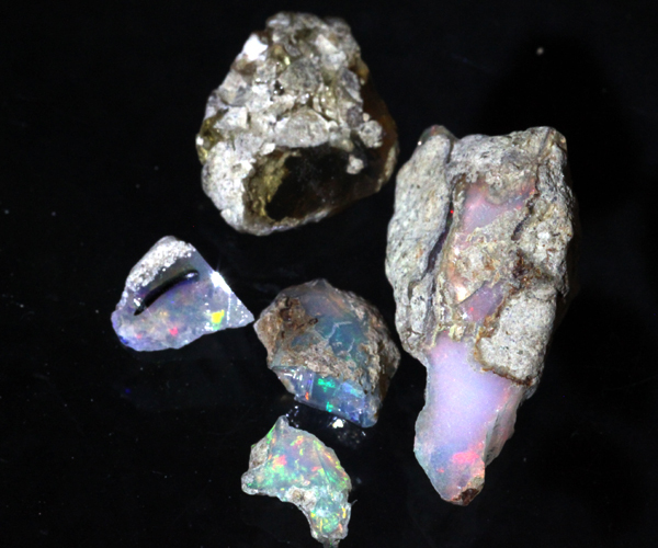 - 【激安】天然ファイアーオパール原石 5Pcs 10.75ct 福袋 エチオピア【651】
