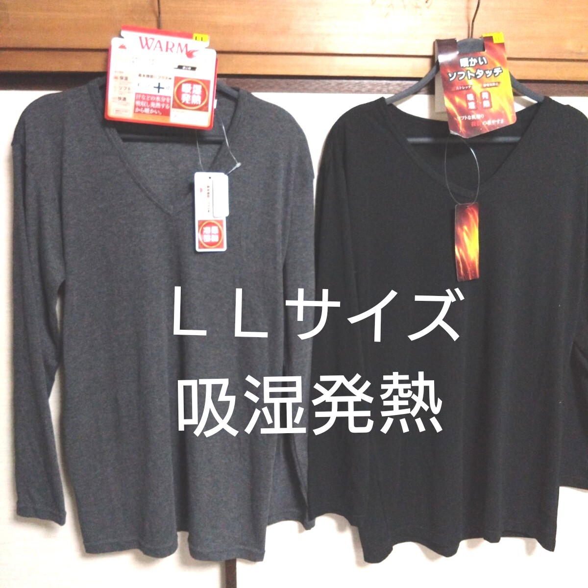 - ⑥メンズ インナーウェア 紳士 吸湿発熱 保温 あったか LLサイズ 長袖 V首 2点