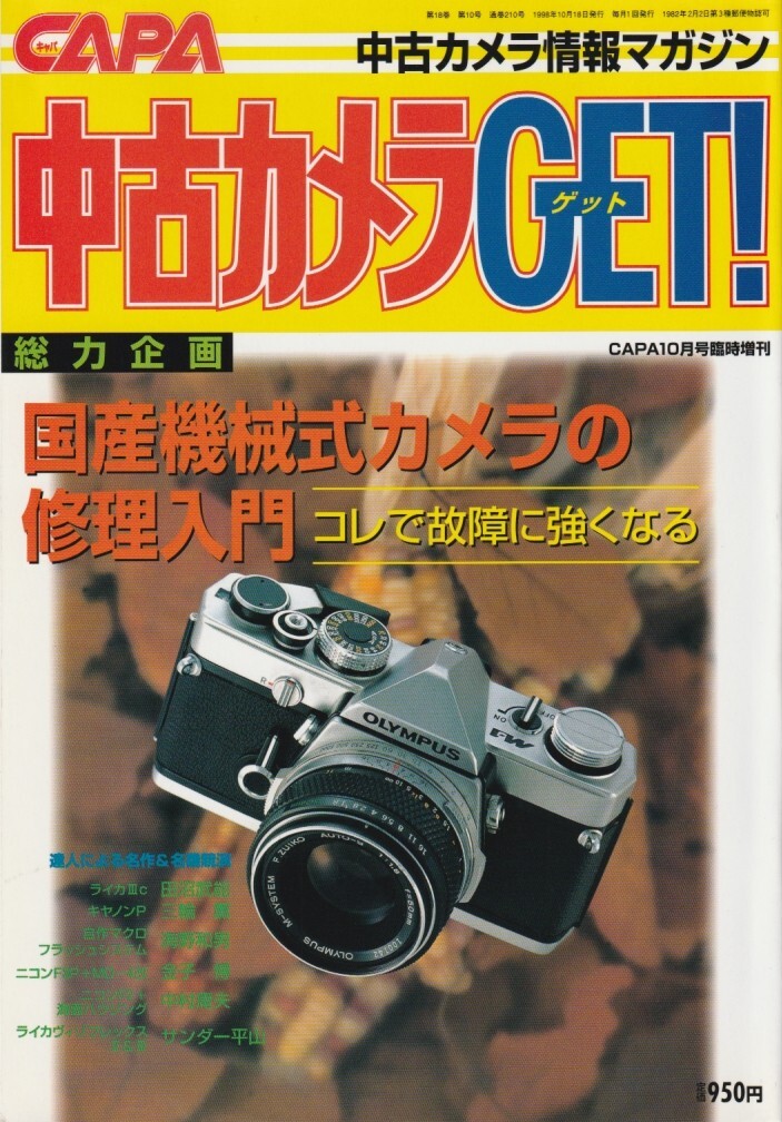 > 【中古カメラGET】1998年10月号/中古カメラ修理&回復/カニ目回し/水銀電池アダプター/ライカR4/ライカ分解/トプコン一眼レフ
