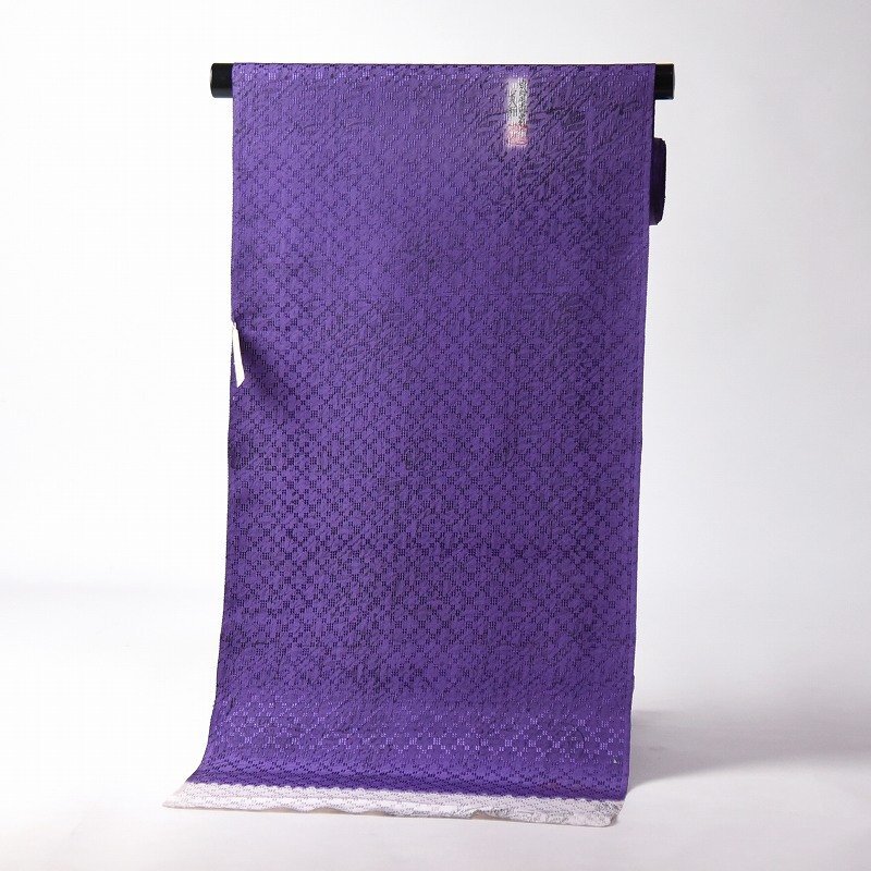 > 【ほりだし堂】 古代印度木版更紗 川端美朝 花織 江戸紫色 反物 紬 正絹 着物 9/30~10/7