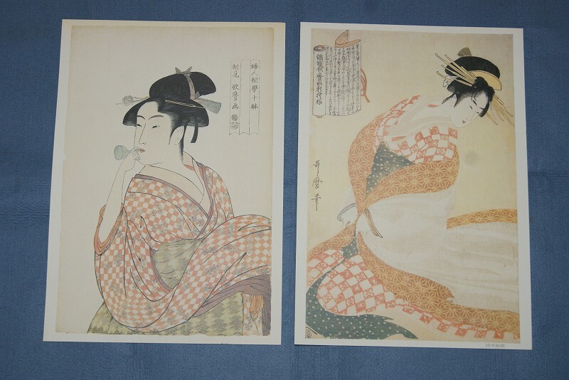- B63★復刻版*浮世絵2枚「錦織歌麿形新模様うちかけ*婦人相学十躰」喜多川歌麿・東洲斎 写楽・印刷物/読売新聞額絵