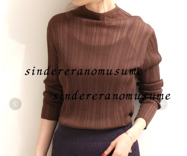 - ★ノーブル ハイネックシアーリブこげ茶カットソー★