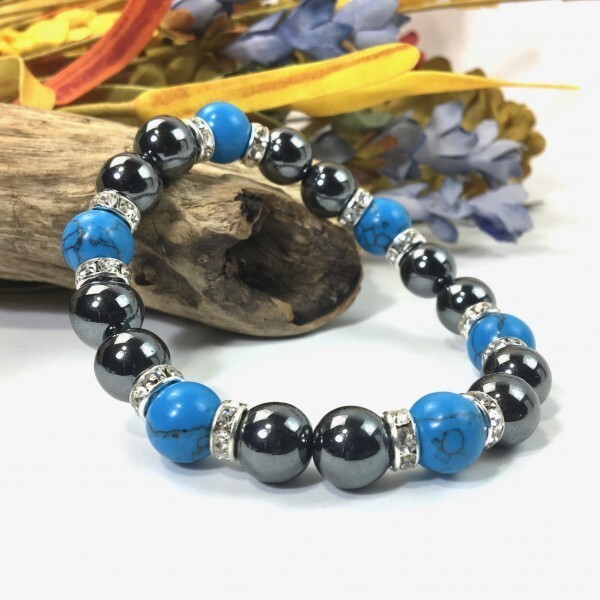 - ヘマタイト×ターコイズ パワーストーン ブレスレット (シルバー) 10mm メンズ・レディース 健康運 勝利 勇気 生命力 還暦祝い