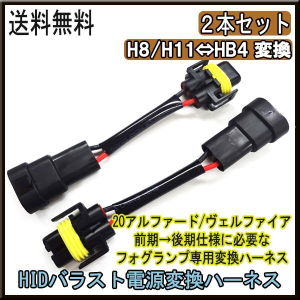 - 送料無料 電源変換ハーネス H8/H11←→HB4 2本セット /HID 変換ハーネス H8 H11 HB4 バラスト バルブ アルファード ヴェルファイア