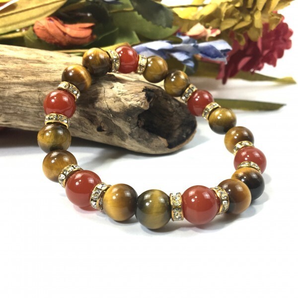 > タイガーアイ×赤瑪瑙 パワーストーン ブレスレット 天然石ブレス (ゴールド) 10mm メンズ・レディース 金運 仕事運 願望成就