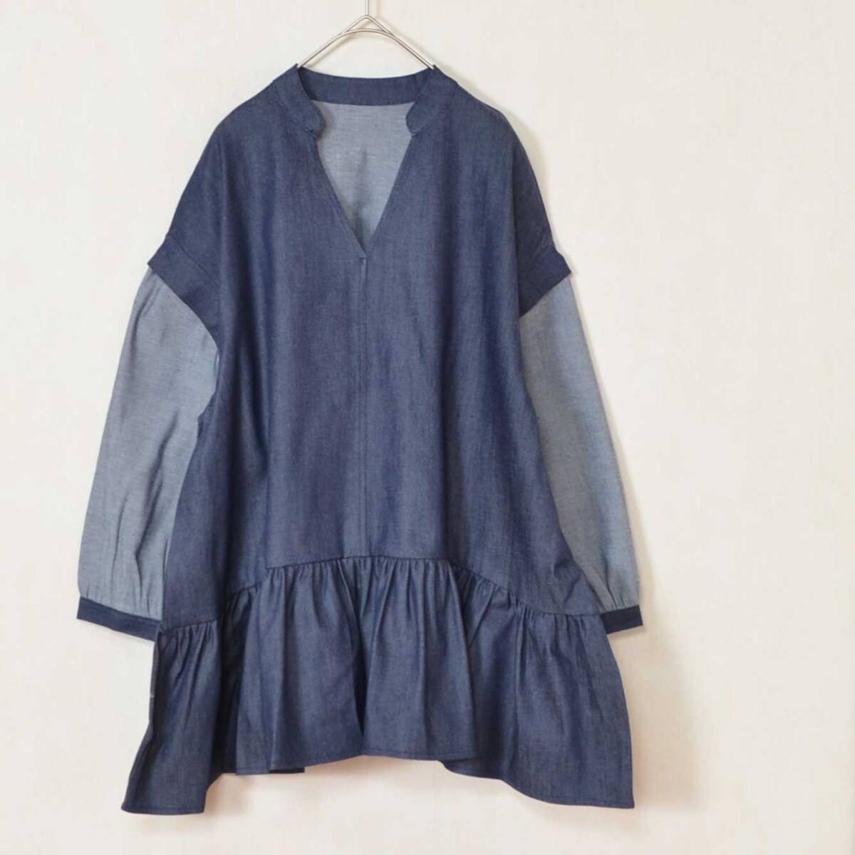 > デニム 2WAY 袖取り外し可 ペプラムトップス M〜L|長袖・半袖切替 体型カバー ネイビー 193330