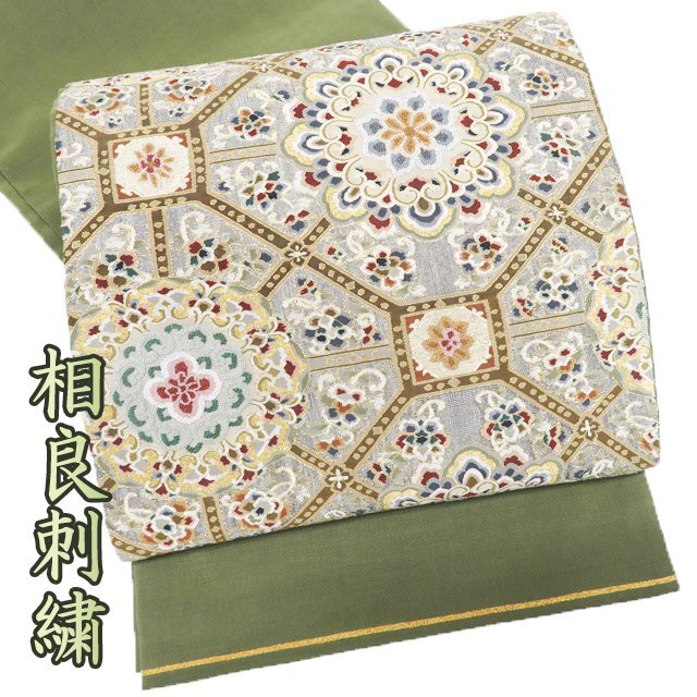 - 特選 袋帯 中古 リサイクル 正絹 フォーマル お太鼓柄 相良刺繍 蜀江文 花紋 華文 スワトウ刺繍 明綴れ きもの北條 A1277-17