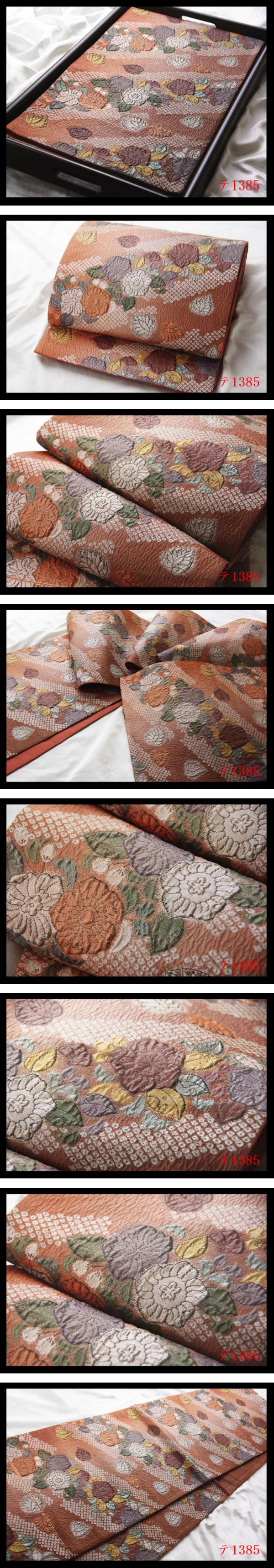 > 蔵【テ1385】西陣逸品 ふくれ織 辻ヶ花紋 真赭色地 気品豊かに 正絹純金糸六通高級美術袋帯 ◇検◇簪着物名古屋帯和装小物帯締め