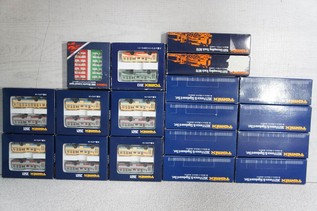 > Tomix 3501/3582/3021/1501 三菱ふそうバス/自転車2/解放ランプ付きレールM70/柵・看板セット D772