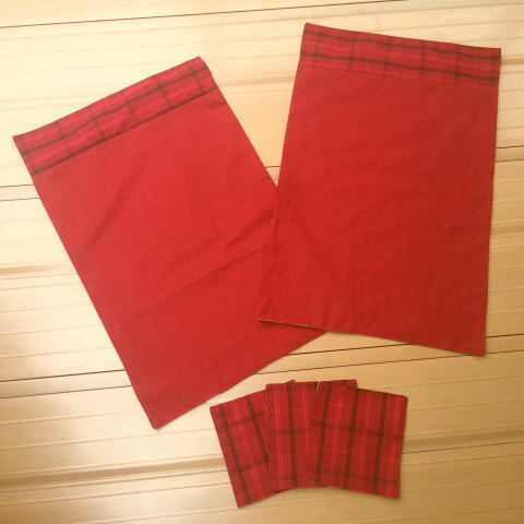 - 【手作り小物】2100円翁格子ランチョンマット2枚コースター3枚セット
