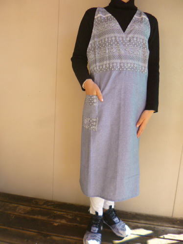 - 【一押し】2900円グレーレースプリント手作りサロンエプロン