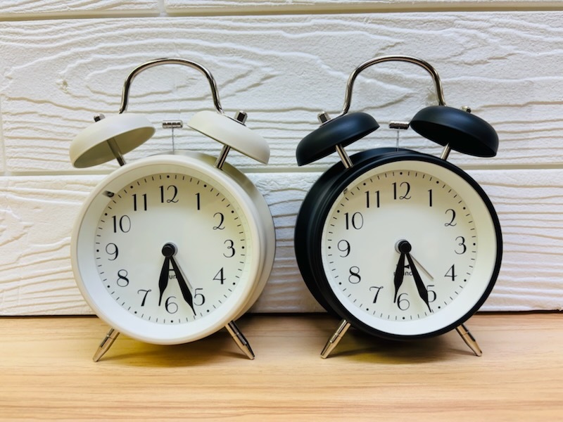 > A785 展示品 BRUNO ブルーノ 2色セット モノクロツインベルクロック ブラック&ホワイト 目覚まし時計 置き時計 お洒落 レトロ 昭和