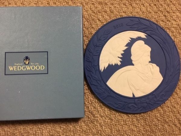 - ◎ウェッジウッド 紺色ジャスパー 2010年イヤープレート 大型カメオ◎z14箱付