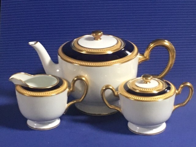 - ◎大倉陶園 Hand Decorated 瑠璃エンボス ポット、シュガーとクリーマーセット◎z78