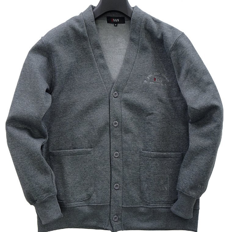 - 新品 ミスターヴァン 24秋冬 裏起毛 ロゴ スウェット カーディガン M 灰【va1744055_198_M】 MR.VAN Vネック スエット トレーナー 羽織り