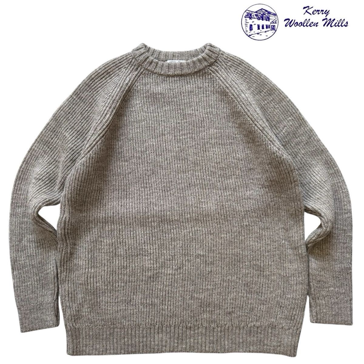 - 美品!アイルランド製【ケリーウーレンミルズ】ローゲージ 畦編みクルーネックセーター Lサイズ グレージュ