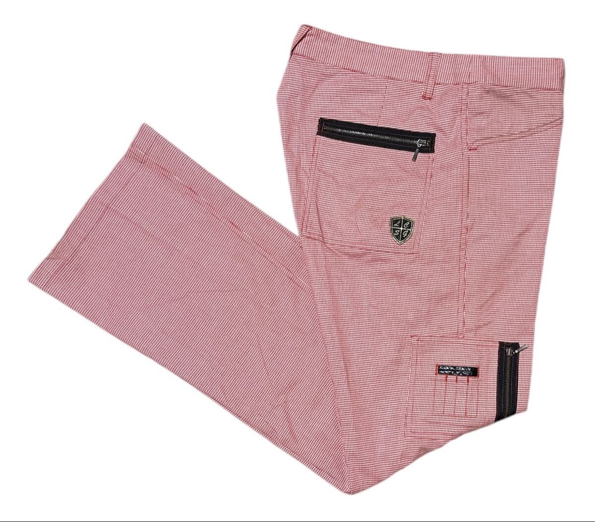 - ▲ le coq sportif GOLF ルコックゴルフ ▲ ロゴ刺繍 千鳥格子柄 ストレッチ ブーツカット ゴルフ パンツ レッド系 85