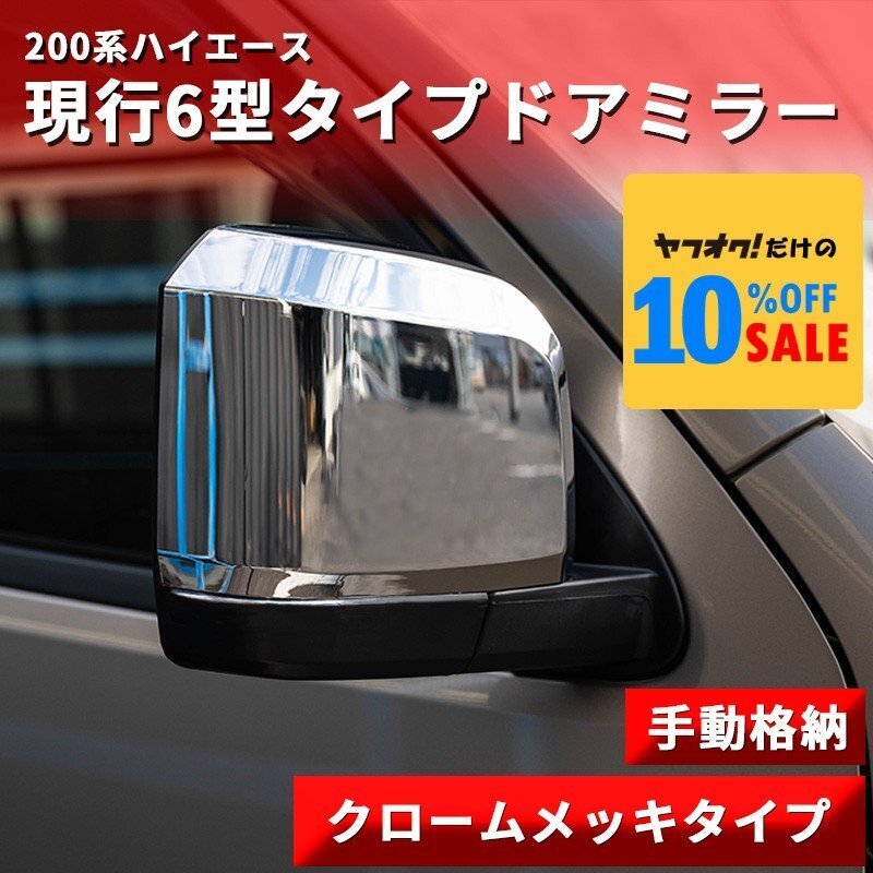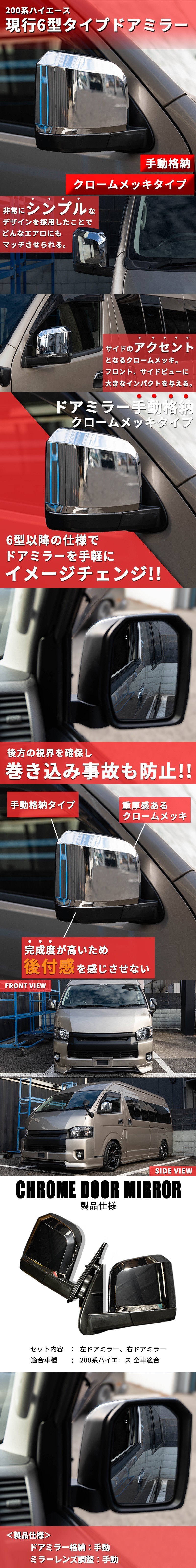 > ハイエース200系 6型タイプ クロームドアミラー(手動) メッキ(S-GL DX ワゴンGL 1型 2型 3型 4型 5型 6型 7型)