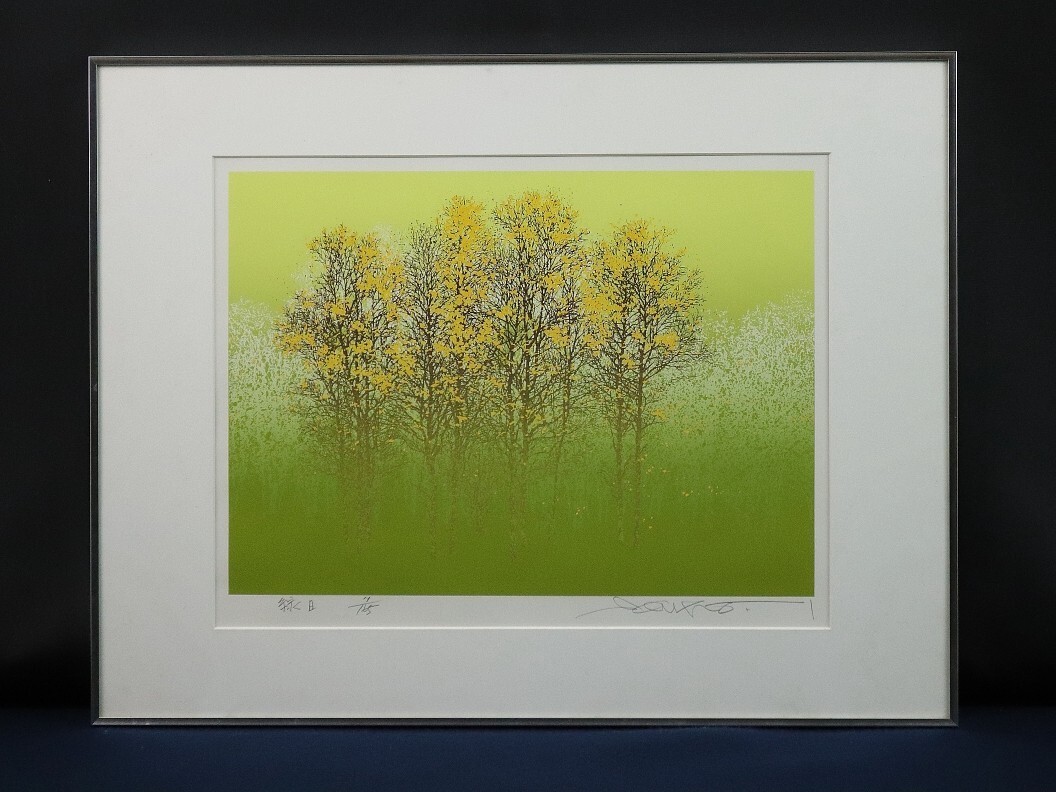 - 10925■【真作】池上壮豊 「緑日」 シルクスクリーン 限定品 サイン・エディション有 福岡の人額装
