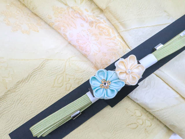 - 《京都一輝堂》【着物】 和装小物 帯締め 帯揚げ セット 帯締 帯揚 縫い取り 暈し つまみ細工 三分紐 帯留め セット 25w05-6282