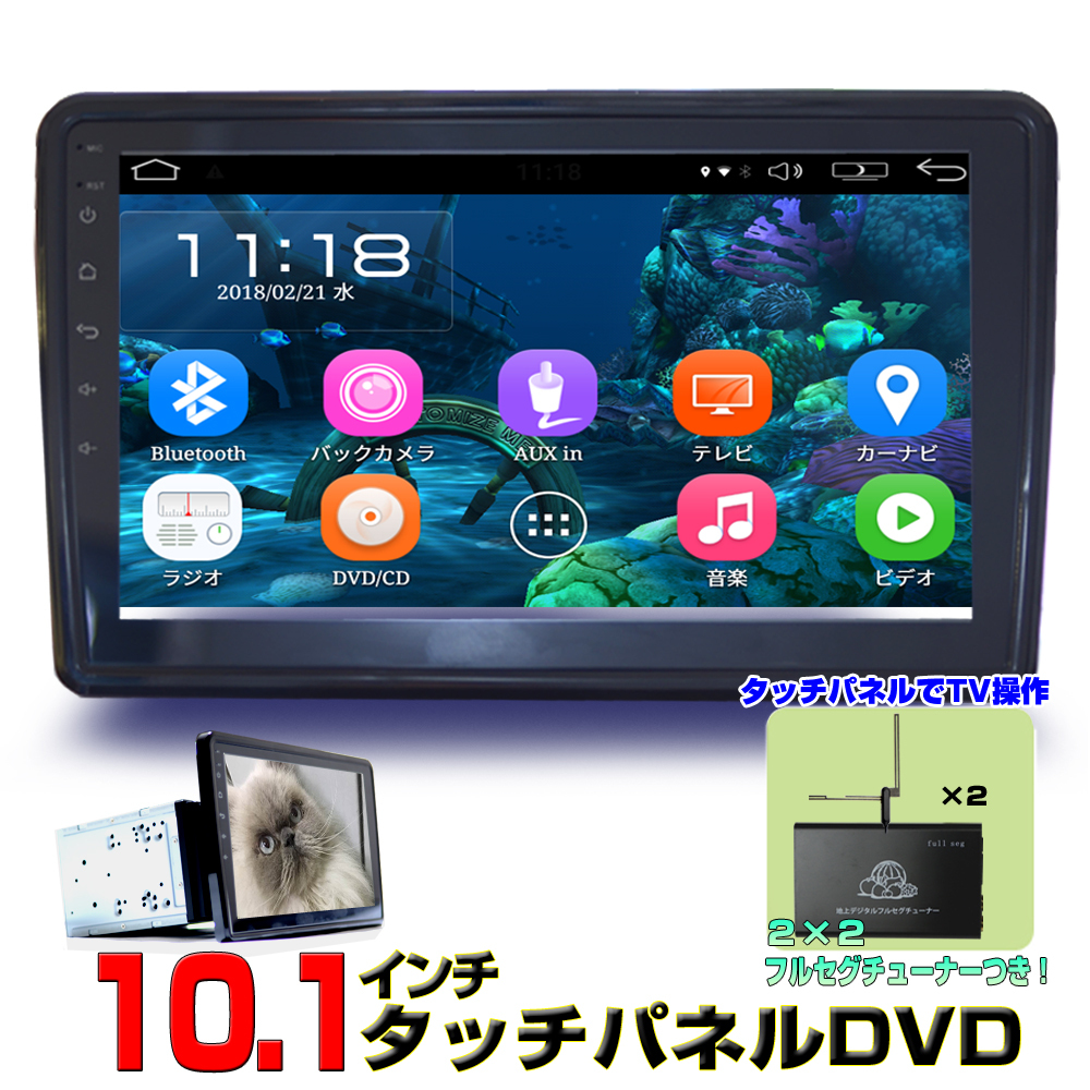 車載 カーナビ 2DIN 10.1インチDVDプレーヤー 地デジCPRM対応 VRモード Android8.0 ラジオ SD Bluetooth内蔵 16GBHDD アンドロイド スマートフォン iPhone WiFi 無線接続【一年保証】+専用地デジ2 x 2フルセグチューナーセット「D482」