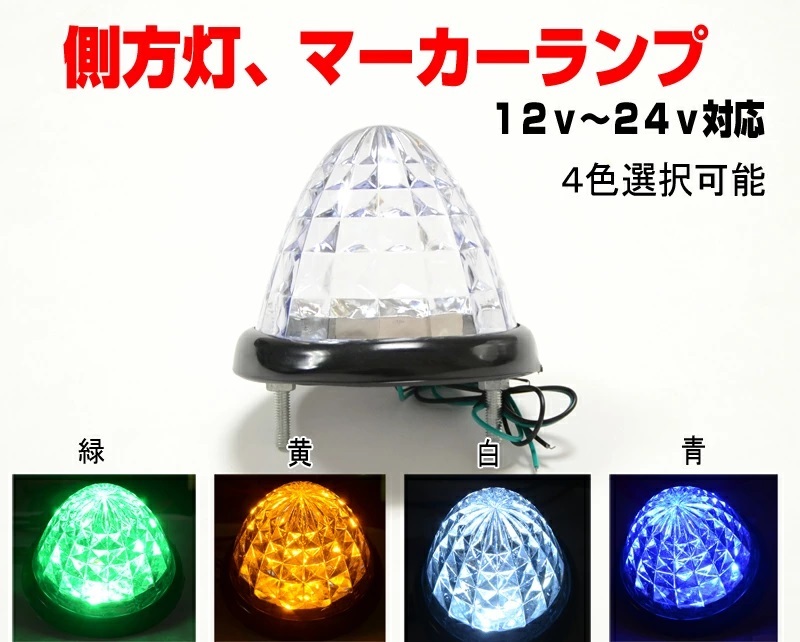 - 【送料無料】トラックマーカーランプ6個セット 12V/24V LED16個ダイヤモンドカットレンズリフレクター緑・黄・白・青の4色