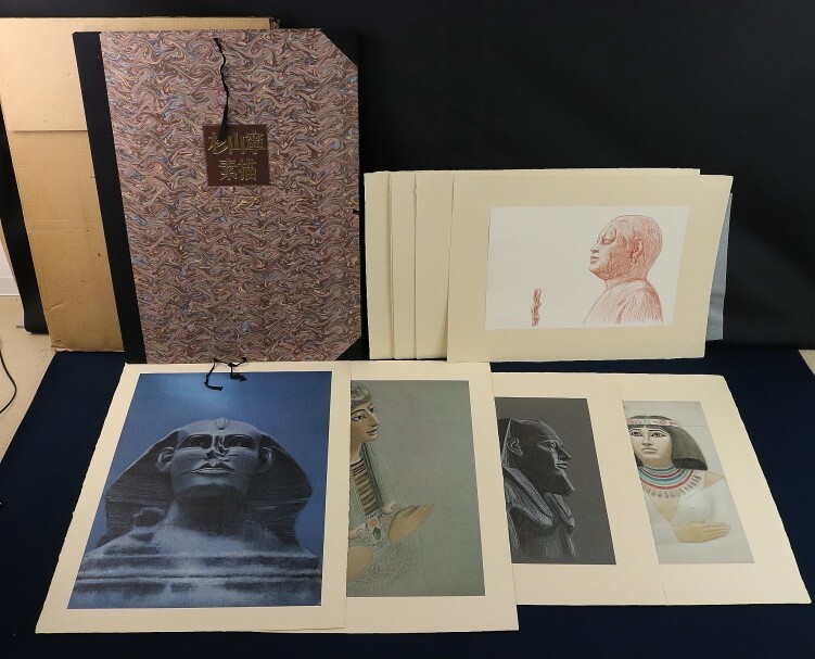 - 10914■【真作】杉山寧 素描 「エジプト」12枚揃い 文藝春秋 工芸印刷 限定280部 1981年