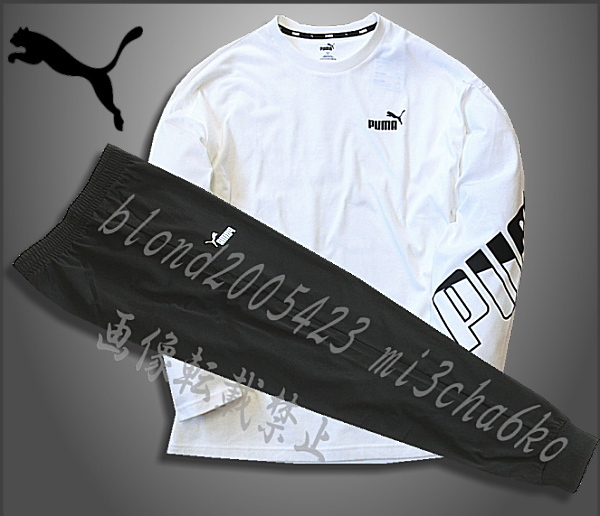 > ■新品【PUMA】プーマ 左腕BIGロゴ SOFT-TOUCH&DRY吸水速乾 クルーネック 長袖パンツ上下■WH/BK(XL)