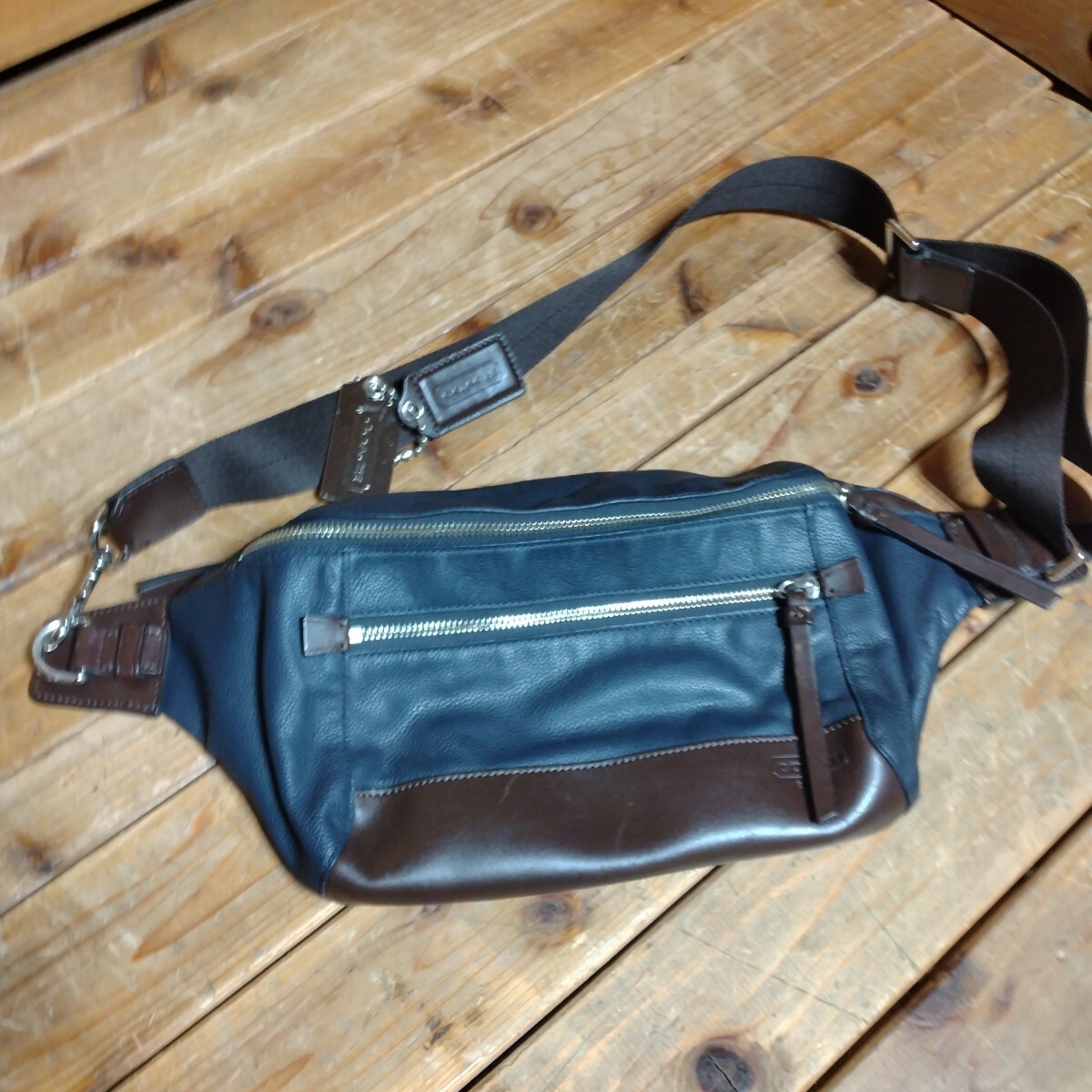 - 【USED】COACH/コーチ トンプソン ボディバッグ ポーチ オールレザー ネイビー/紺 メンズ