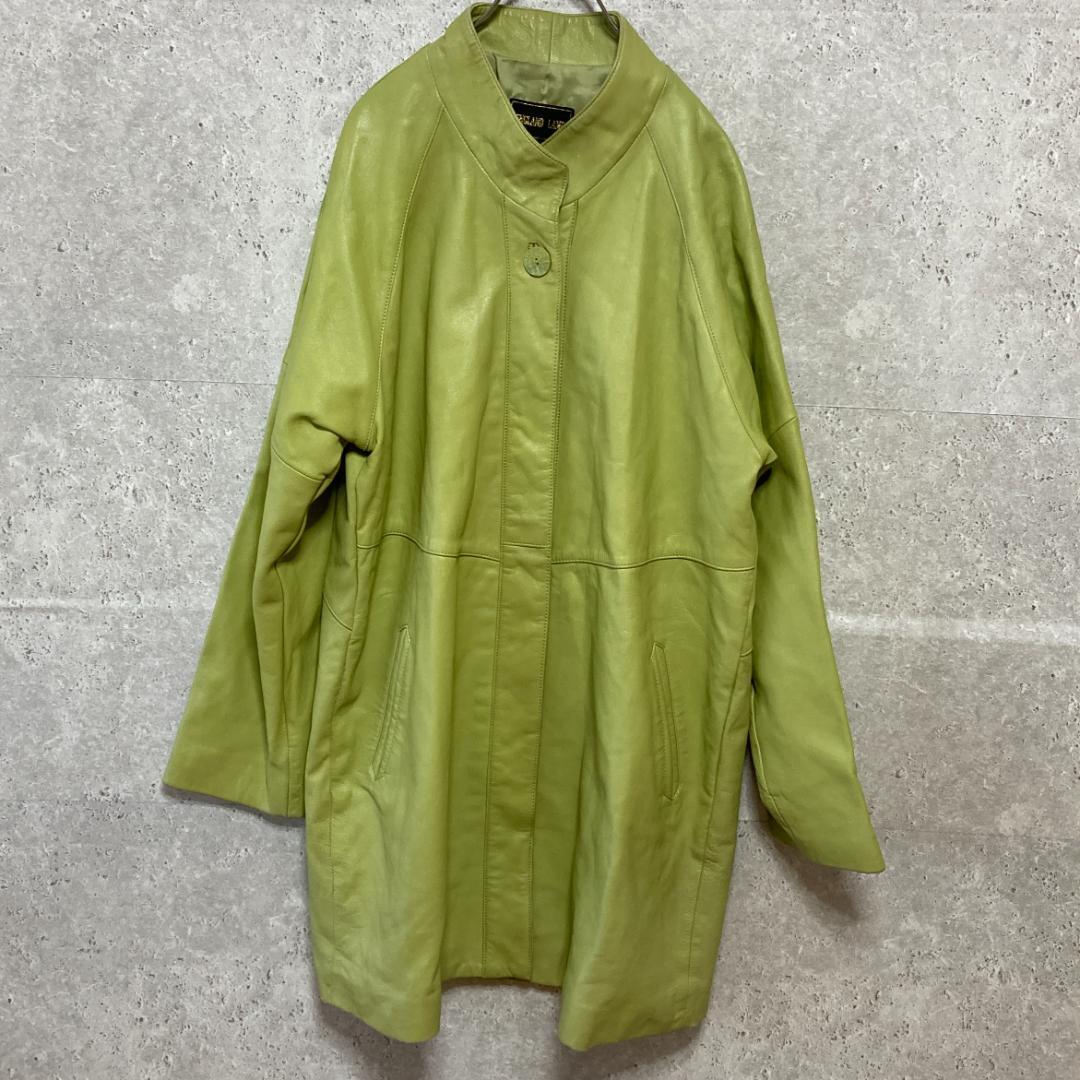 - ENGLAND LAMB(11)レザーコート*ラム革*スタンドカラー*裏地*黄緑