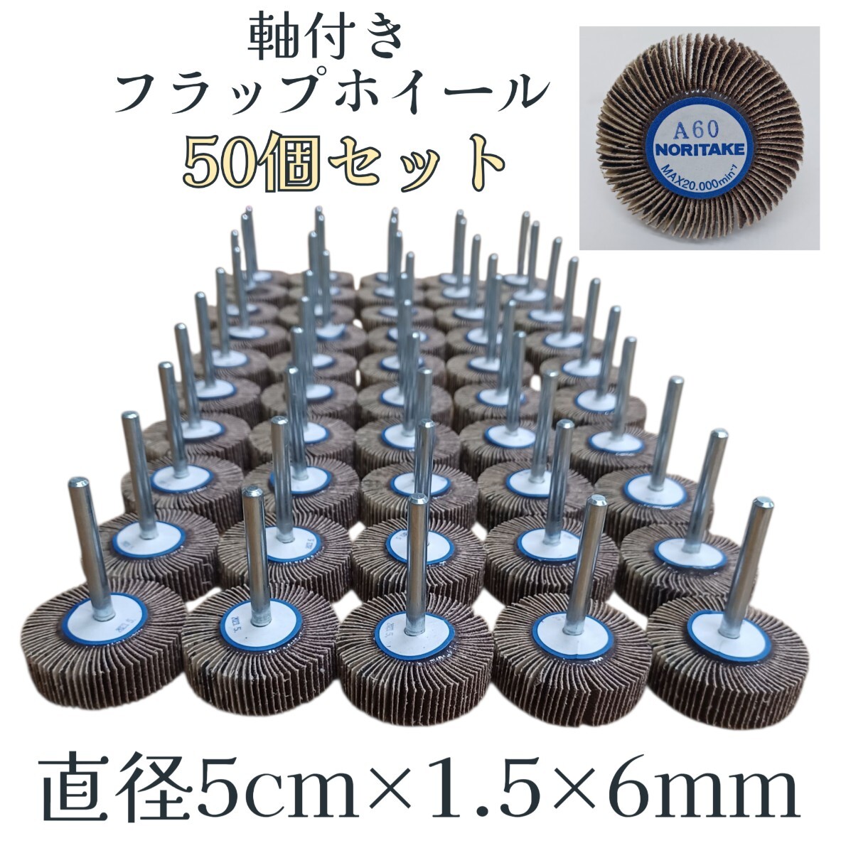 - 岩⑥)軸付きフラップホイール 50個セット NORITAKE 粒度60番 フラップホイール グラインダー 研磨 研削 工具 251001(N-1-3