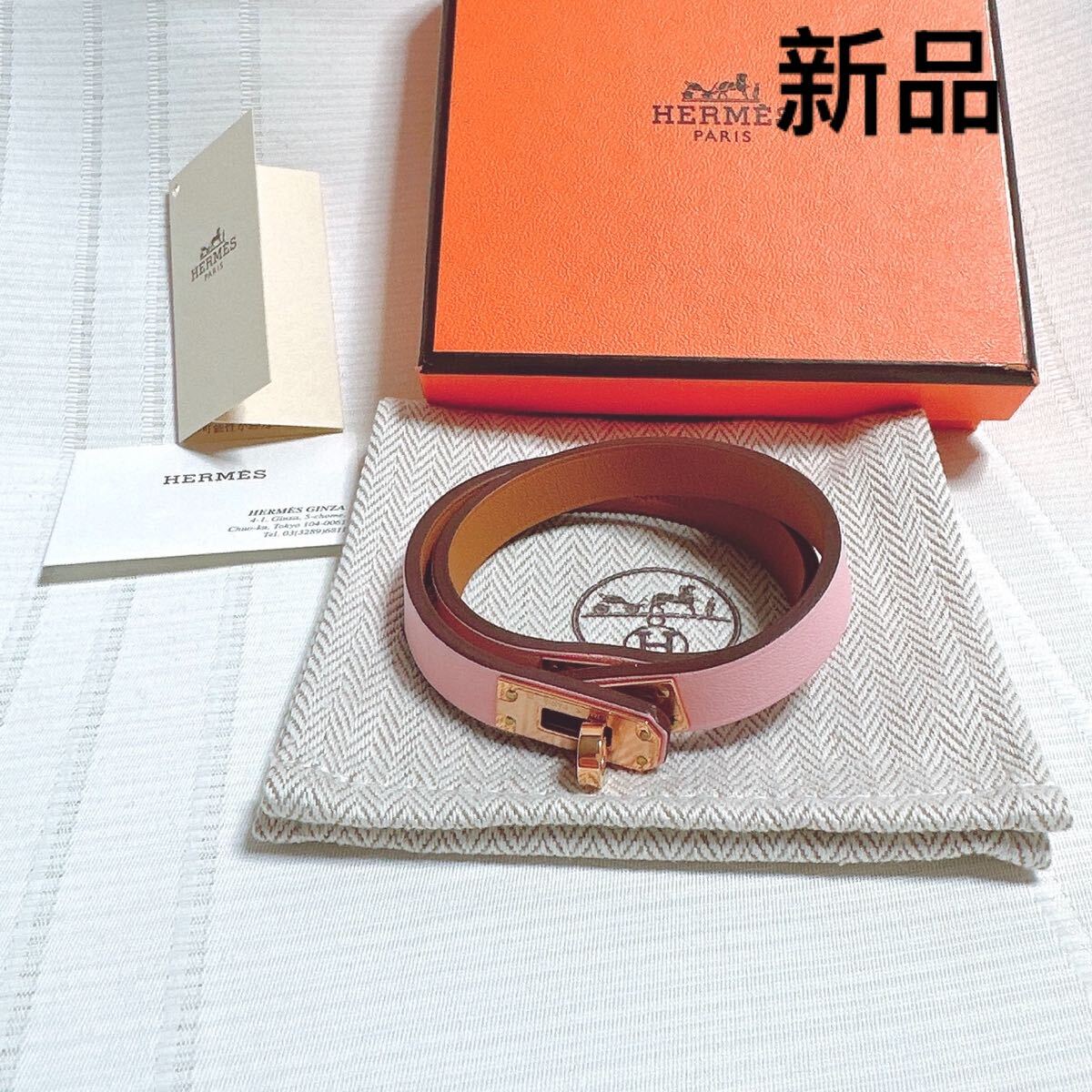 > HERMES KELLY エルメス ケリー ドゥブルトゥー ブレスレット バングル 2連 新品 レザー アクセサリー レーディス ピンク