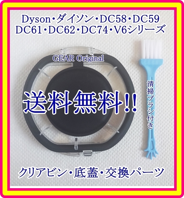 > ★匿名配送・追跡付き・送料無料!★新品!★ダイソン・DC58・DC59・DC61・DC62・DC74・V6シリーズ・クリアビン用底蓋1個・ブラシ付き★