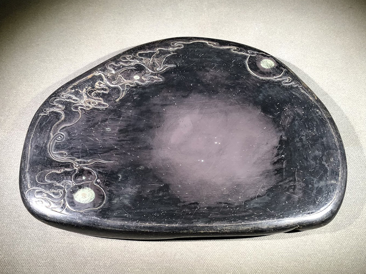 - ◆御泓軒◆『清時代 汪由敦銘 端石彫 祥雲仙鶴福禄紋硯 端渓硯』極細工・古賞物・中国古玩・中国古美術