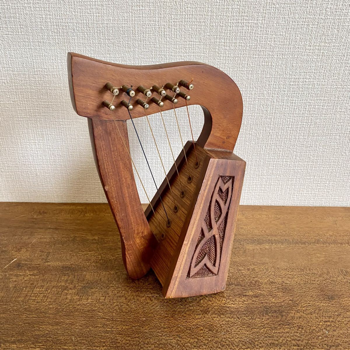 - ベイビーハープ 6弦 アイリッシュハープ 高さ約22.5㎝ / 弦楽器 ベビーハープ ミニハープ メーカー不明 【現状品】
