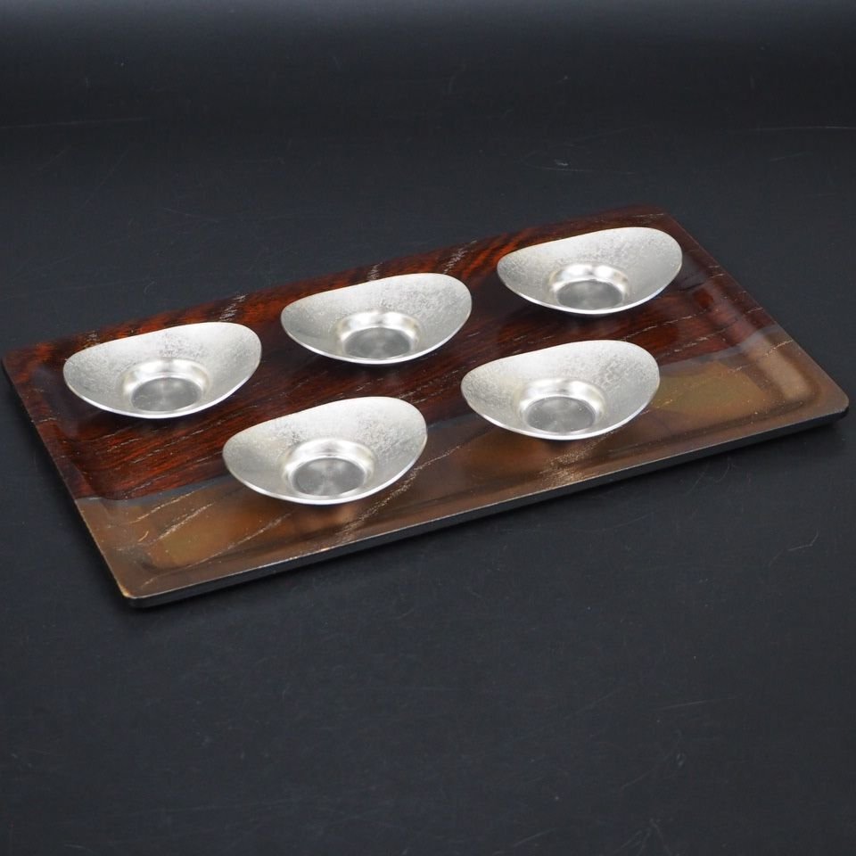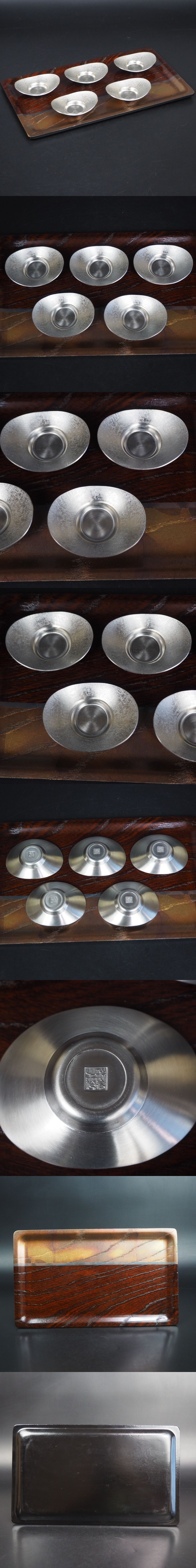 - 【金富士】四角煎茶盆+茶托5客 煎茶道具 検/紫檀花梨唐木中国古玩清時代民国唐木