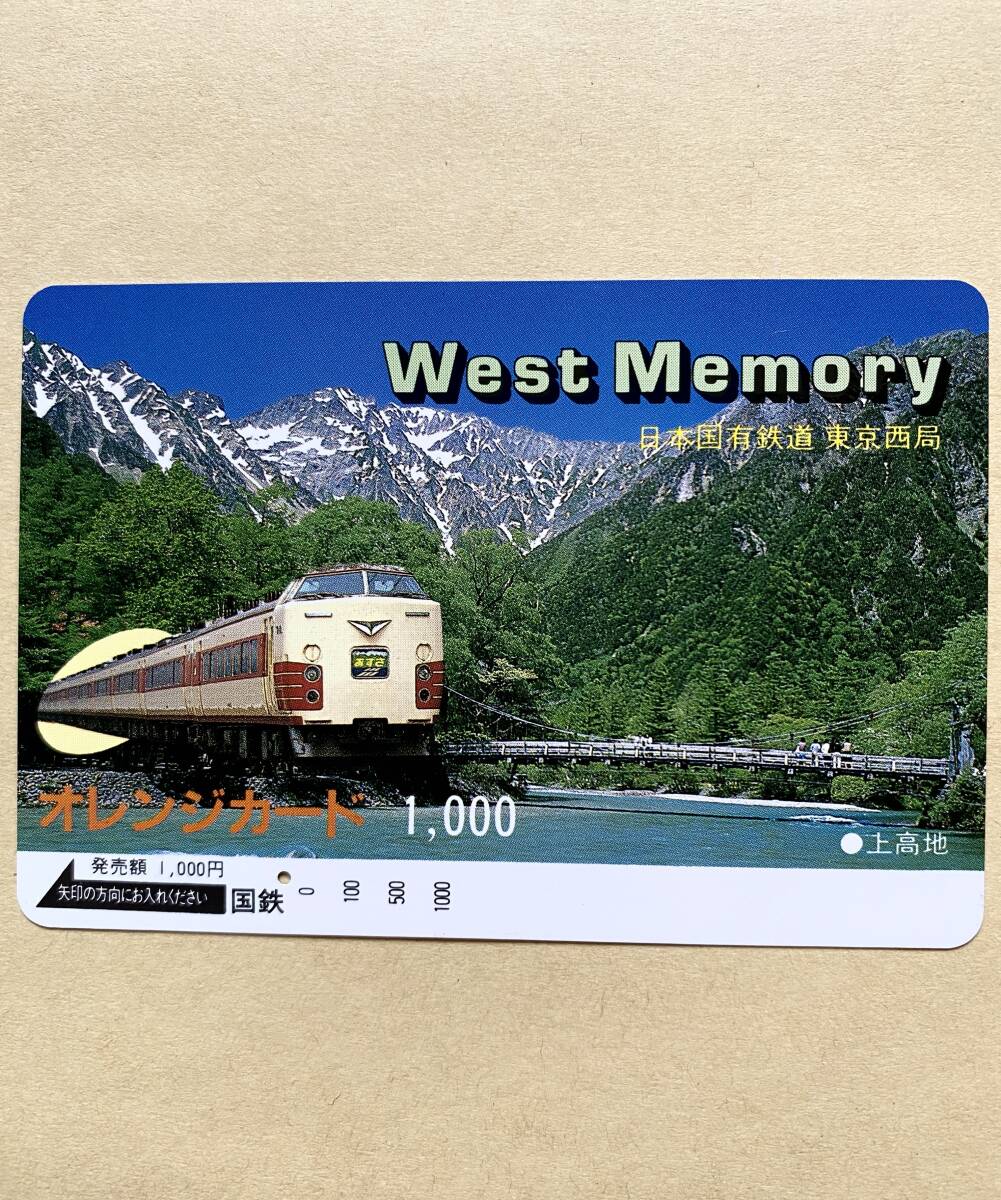 - 【使用済】 オレンジカード 国鉄 West Memory 上高地 日本国有鉄道東京西局