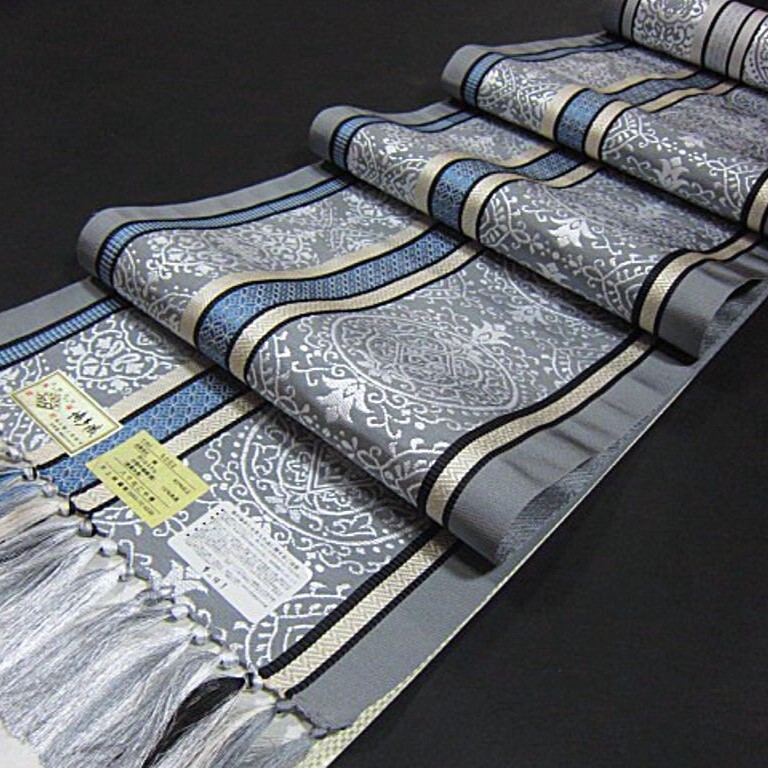 - 逸品 新品未仕立 正絹 本場筑前博多織八寸名古屋帯 お稽古事、観劇、芸術鑑賞、ショッピング、お出掛け等に グレー系