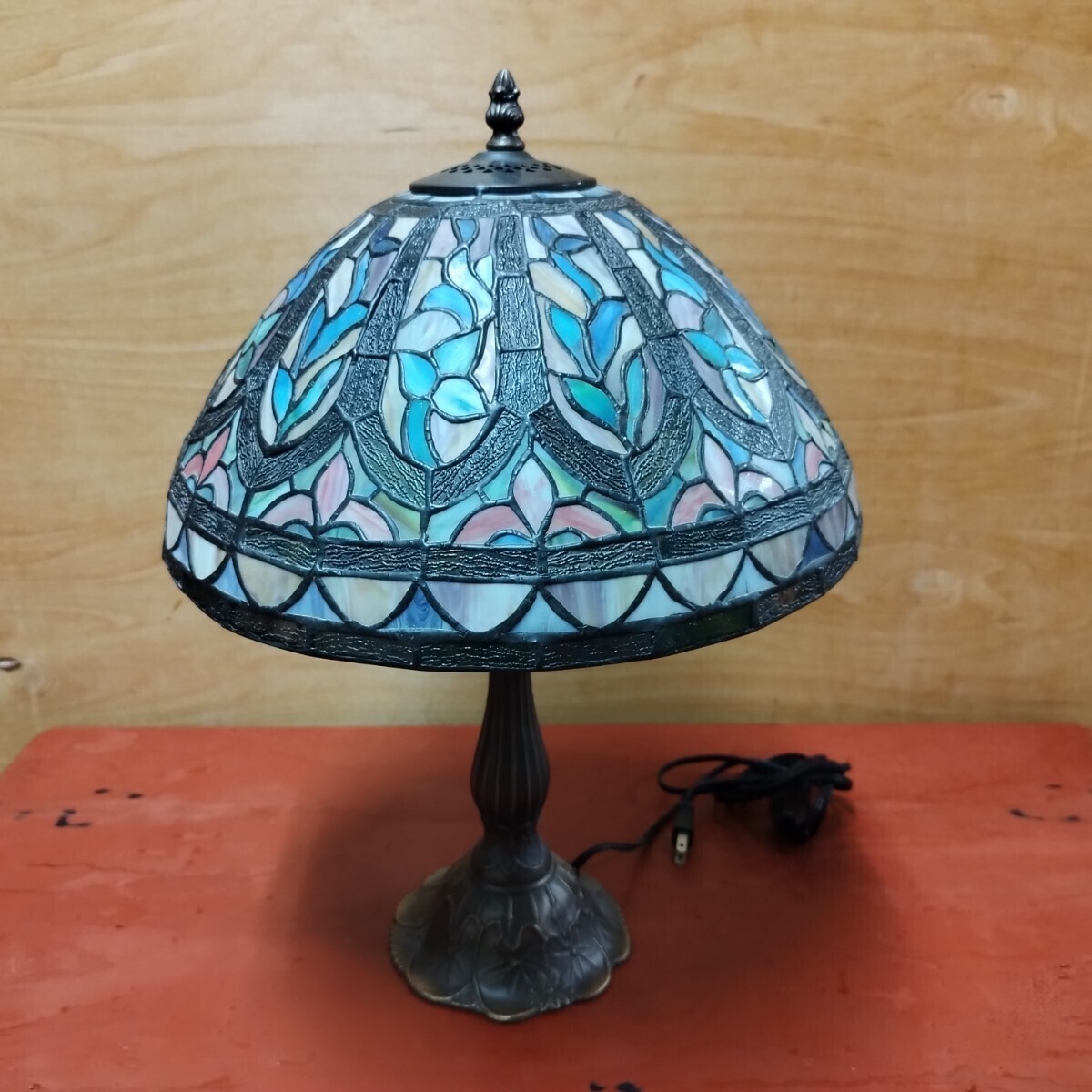 > 戸05d ステンドグラス シェード 電傘 直径35cm レトロ アンティーク テーブルランプ インテリア 中古 ティファニー技法
