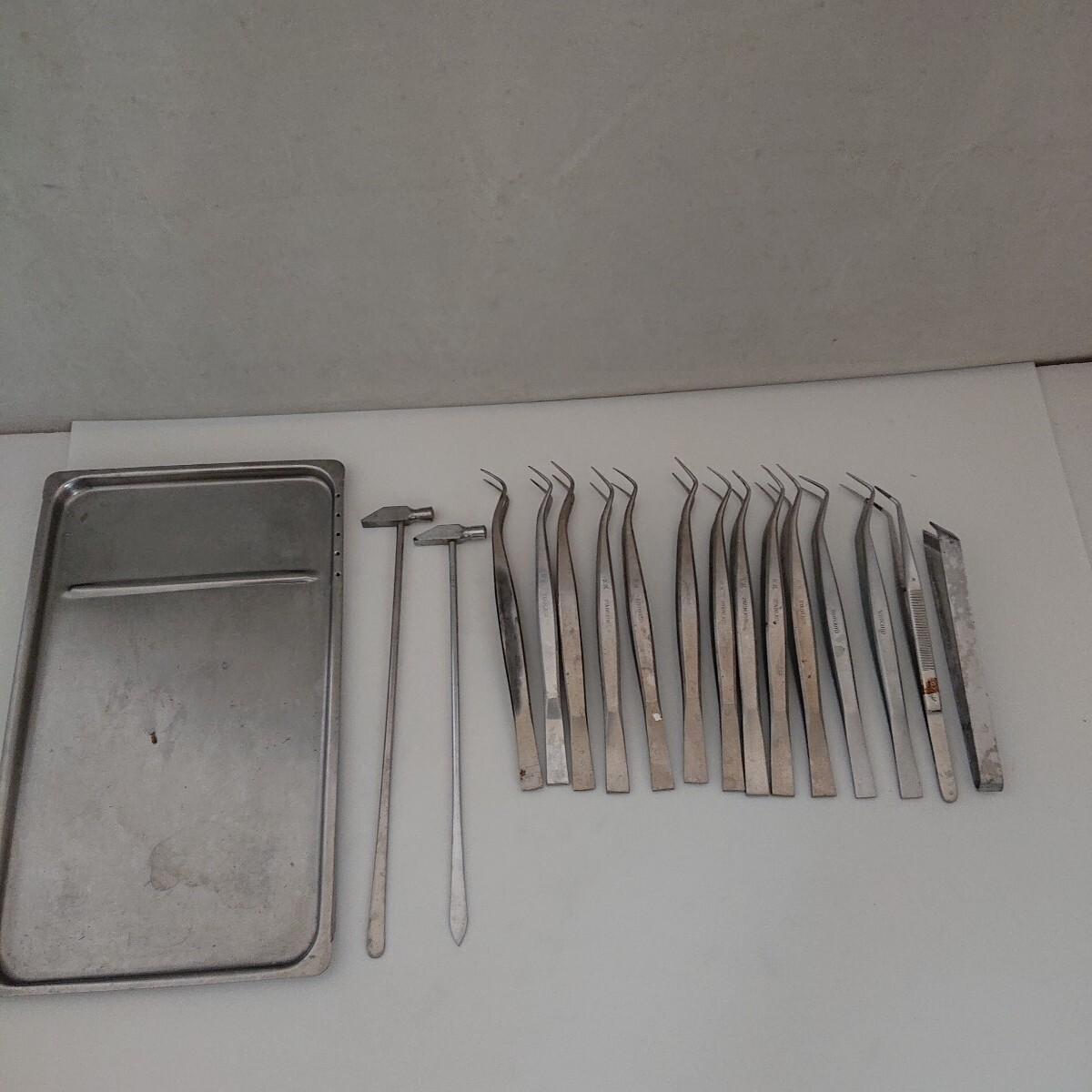 - 【歯科・歯科医療器具】ステンレス ハンマー・ピンセット類 ステンレス トレイ含め 約16点 歯科技工 医療工具 現状品 ぷらみ1001 108